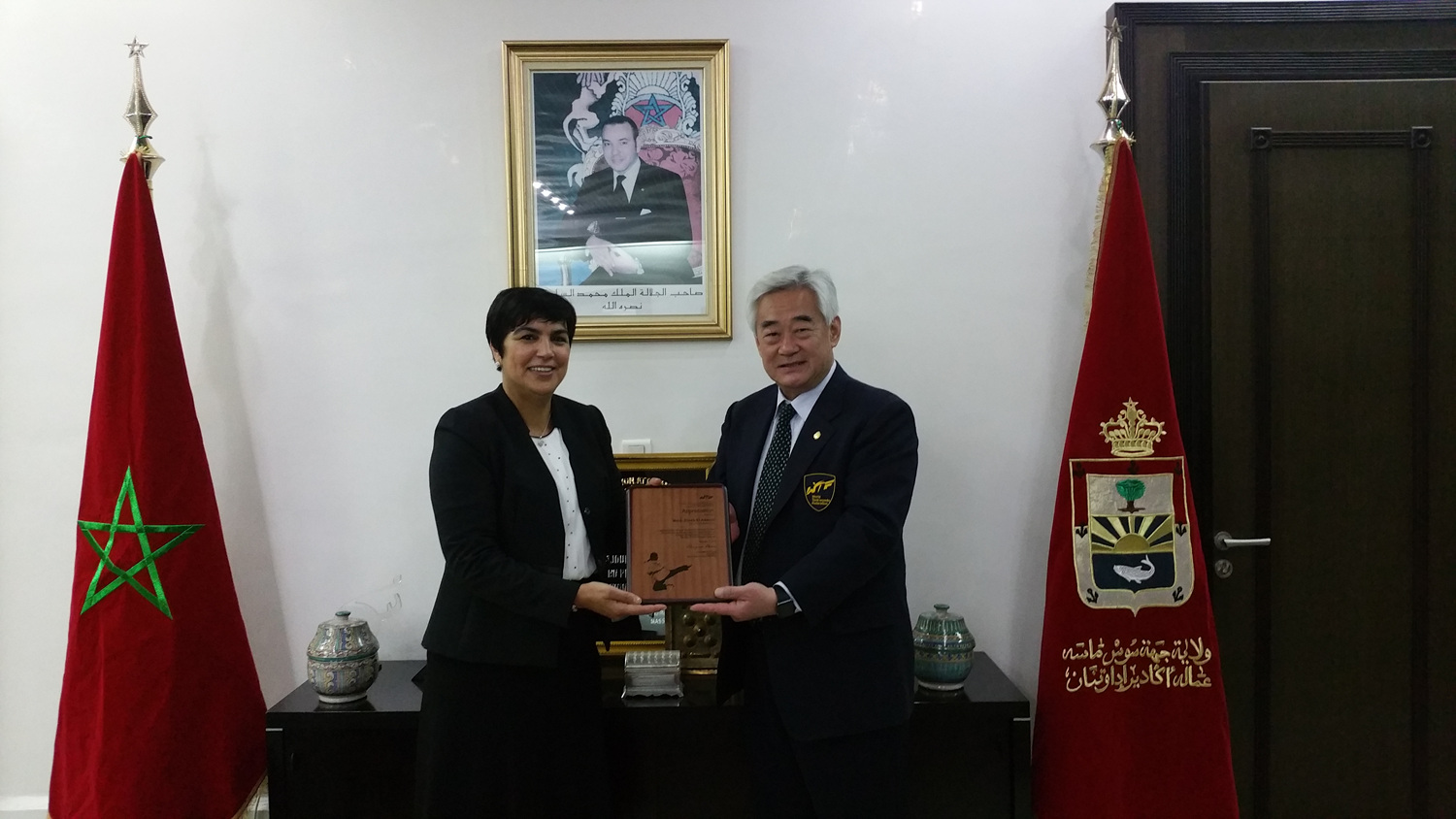 Choue also visited the Wali of Souss in Massa Region, Zineb El Adaoui, and presented her with an Appreciation Plaque in recognition of her support for taekwondo.