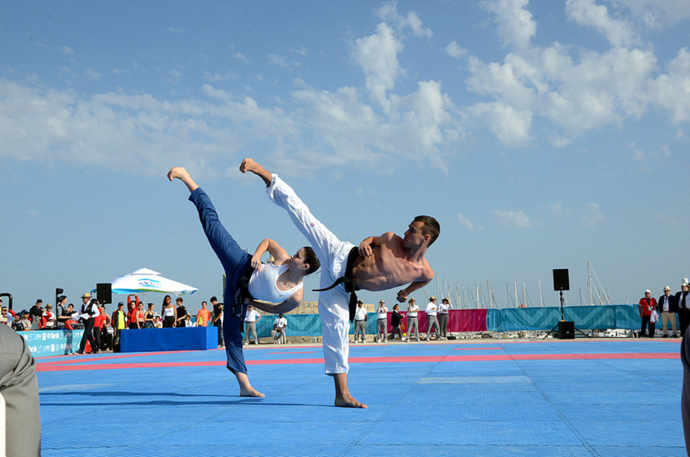Beach taekwondo was created by WT to take the sport out of the arena and into the sunshine. Uniform codes are relaxed, meaning competitors can wear the kind of customized gear rarely seen in traditional martial arts competition. If they wish, athletes can strip down and show off a bit of muscle, and sunglasses are permitted in some divisions.