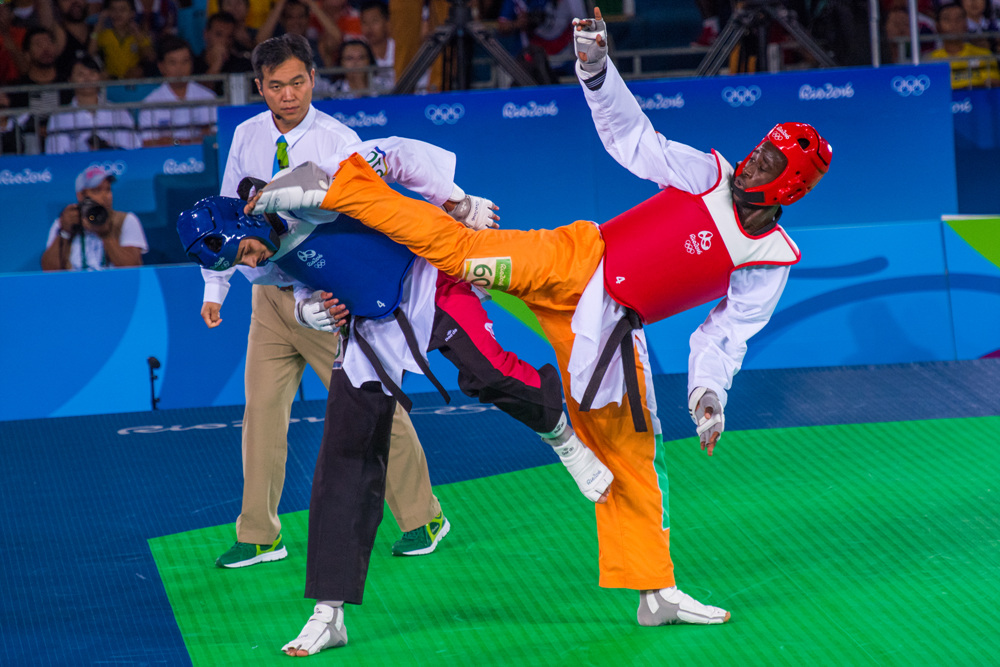 In the final match of the male -80kg category, Cote d’Ivoire’s Cheick Sallah Junior Cisse had been behind Team GB’s Lutalo Muhammad for the entire match. With the buzzer about to sound to end the match, he unleashed a desperate attack: A jump spinning heel kick to the head of his opponent. It connected. In the very last second, the African star had won his country its first-ever Olympic gold.