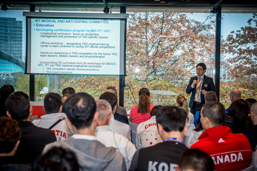 Dr. Dae Hyoun Jeong during the head of team meeting for London 2017 World Taekwondo Grand Prix