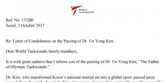 Un Yong Kim, Founding President of World Taekwondo Passes Away