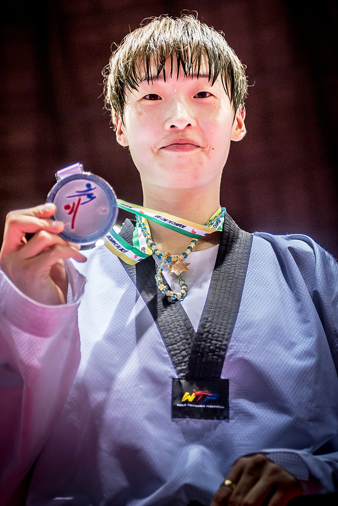 Lee, 23, holds a fourth dan black belt. Currently a senior at Korea National Sports University, she first took up taekwondo when she followed friends into her middle school club. There, she discovered a talent. That talent blossomed, and Lee first qualified for the Korean National Team in 2010. She won gold at the Incheon Asian Games in 2014 – then added to her stash with another top-level gold in Taipei at the 2017 Universiade.