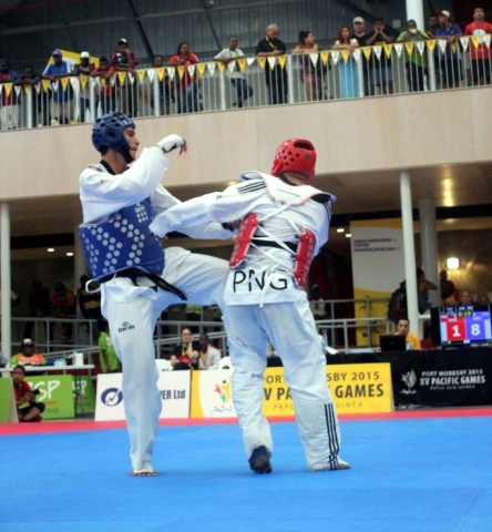 Australia’s men’s taekwondo team followed in the footsteps of their female counterparts as they produced a dominant display to claim five of the eight gold medals available at the Taurama Aquatic and Indoor Centre on the penultimate day of Port Moresby 2015 action.