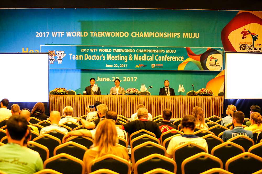 SEOUL, Korea (August 17, 2017) – Among a number of very high-profile “firsts” at the recent 2017 World Taekwondo Championships – first time a Korean president had attended; first time an IOC president had attended – one first might have been overlooked: The first-ever WT Medical Conference