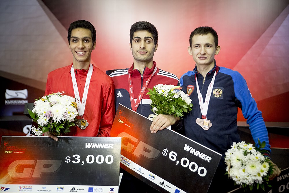 BAKU, Azerbaijan (Dec. 9, 2015) – On the first day of the 2016 World Taekwondo Grand-Prix Final, Charlie Maddock of Great Britain, Milad Beigi Harchegani of Azerbaijan, Hyeri Oh of Korea and Carlos Navarro of Mexico captured gold medals in the last elite tourney of the year, on the coast of the Caspian Sea.