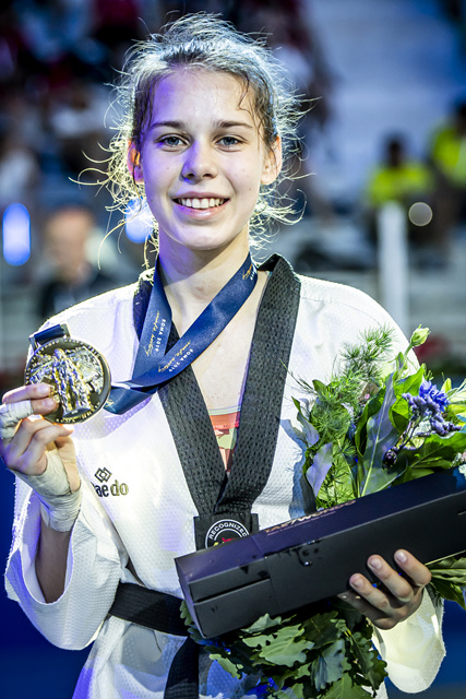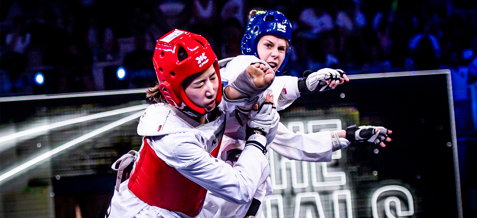 Elizaveta Ryadninskaya and Jae-Young Sim of Korea contested the first final of the night. In the first round the two fighters struggled to find the angle needed to land any points and it was their defences which came out on top. Ryadninskaya broke the deadlock 20 seconds into the second round with a kick to the head. She added to her lead with a punch at the beginning of the third round and followed up with another kick to the head to go seven points clear. Sim fought back well, landing a head kick to take the score to 7-3. A power punch from Kim reduced the point difference further but her progress was undone by a gam-jeom. Ryadninskaya took gold winning 8-4.
