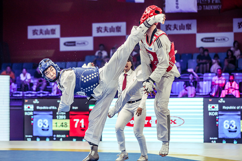 Woo-hyeok Park of Korea, who received bronze in the men’s -68kg category at the World Taekwondo Championships in Manchester in May this year, was an asset to the Koreans. With his aggressive attacks he made it hard for the Iranian team.