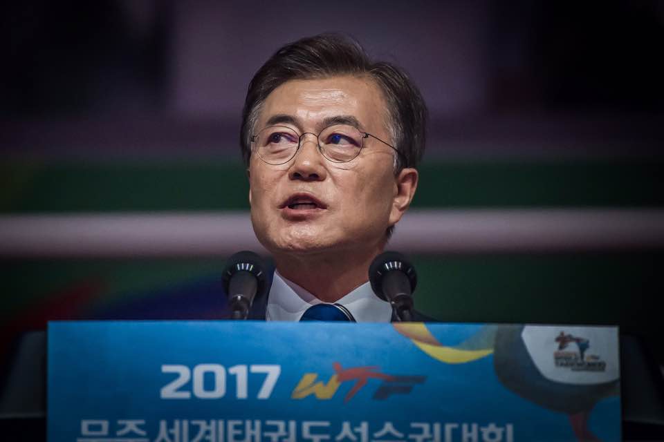 MUJU, Korea (June 24, 2017) – South Korean President Moon Jae-in, in a surprise visit to the first day of the 2017 World Taekwondo Championships Opening Ceremony, spoke of his hopes for sportive and political reconciliation between the two Koreas.