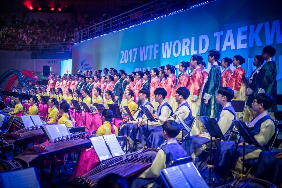 It opened with video on the overhead screens of taekwondo matches, performances and Taekwondowon – the world’s largest taekwondo-dedicated training facility and the championship venue – and a recorded message about the Taekwondo Humanitarian Foundation, a charity initiative which empowers child refugees worldwide via the gift of taekwondo training.