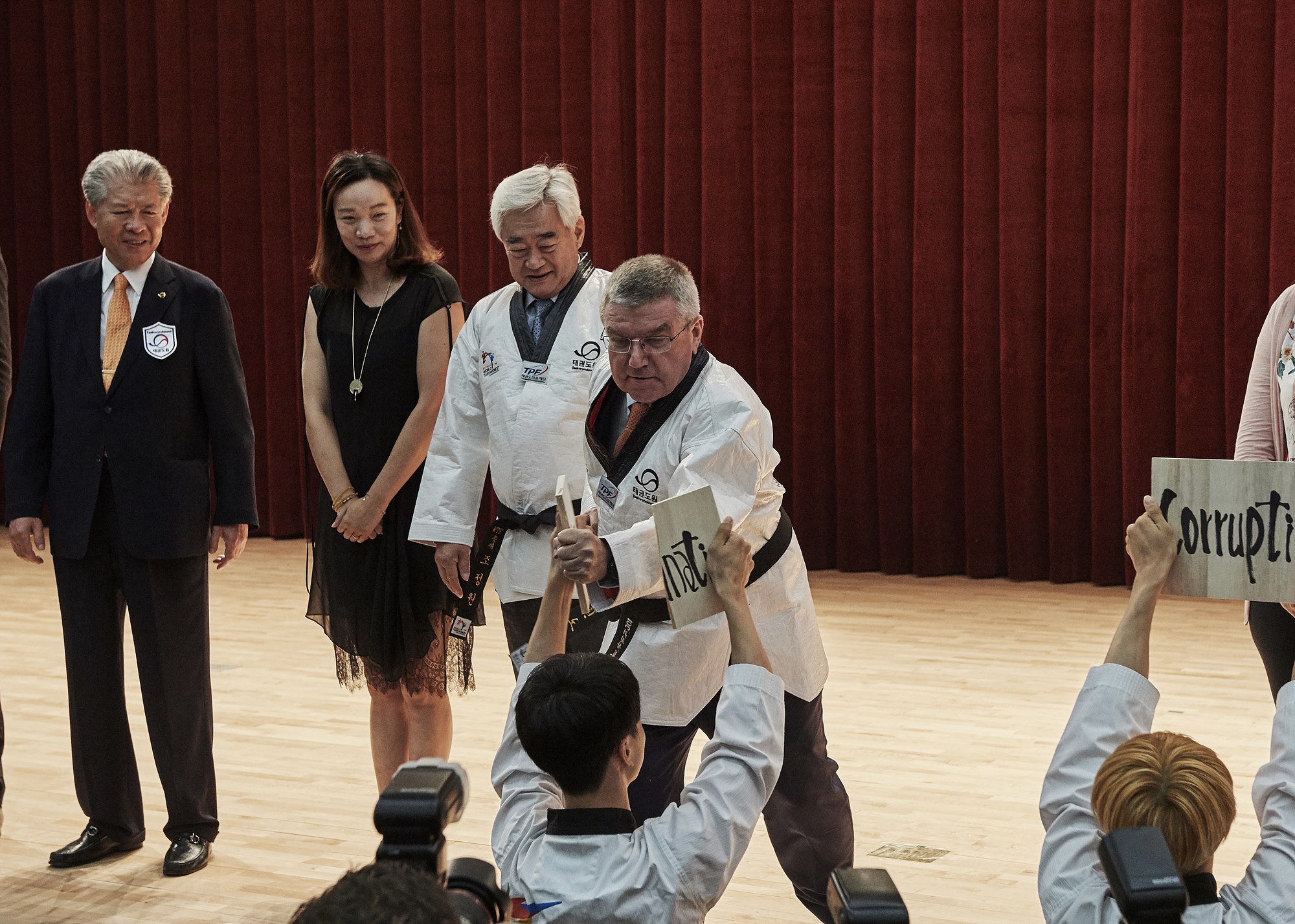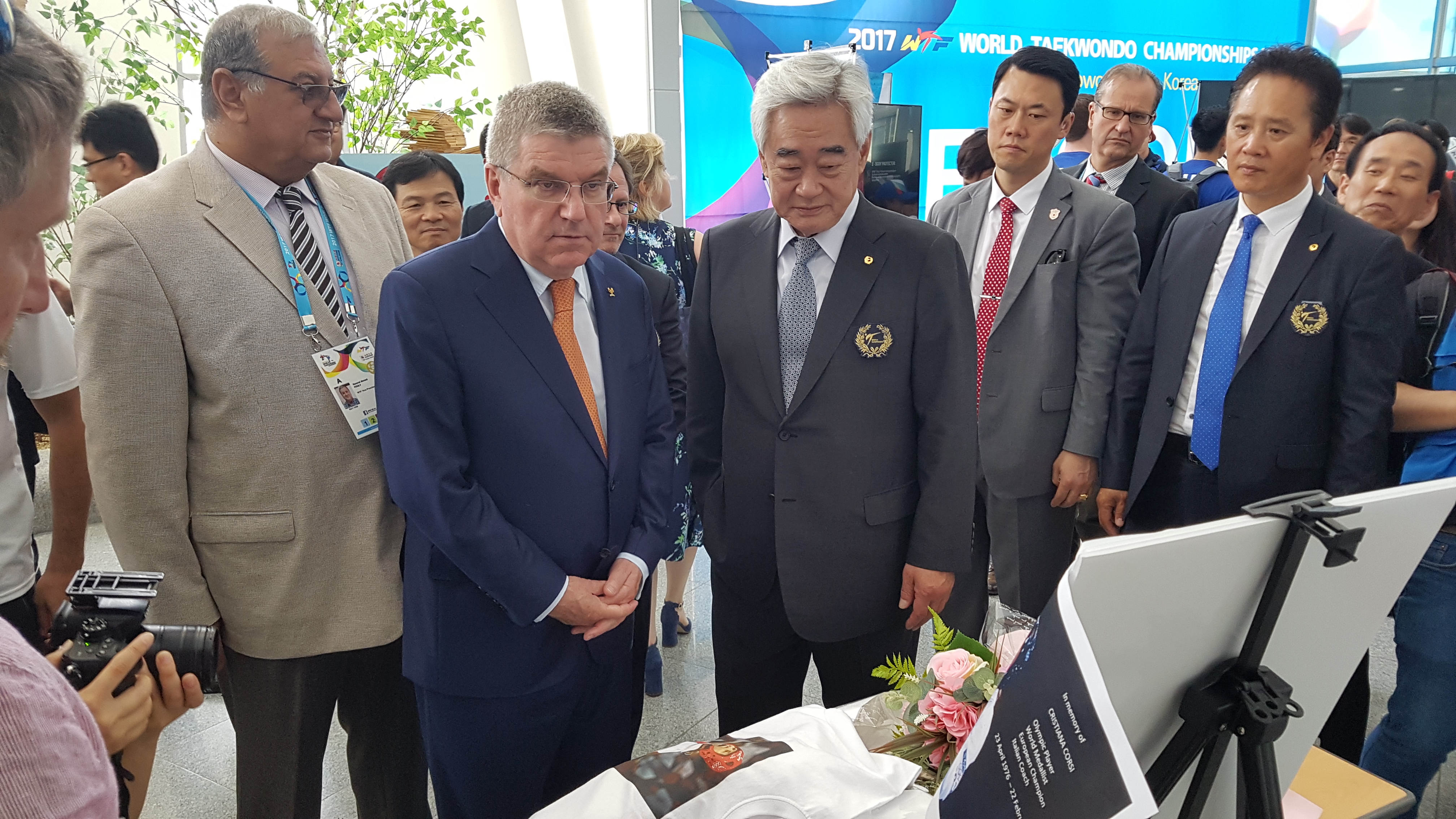 Following a short visit to the Taekwondowon Museum, Bach paid his respects to a memorial for athletes who have passed away recently, set up at the entrance to the championship venue. “That is a very good gesture to honor these young athletes,” Bach, who was visibly moved, said. “It is good to keep their memory alive.”