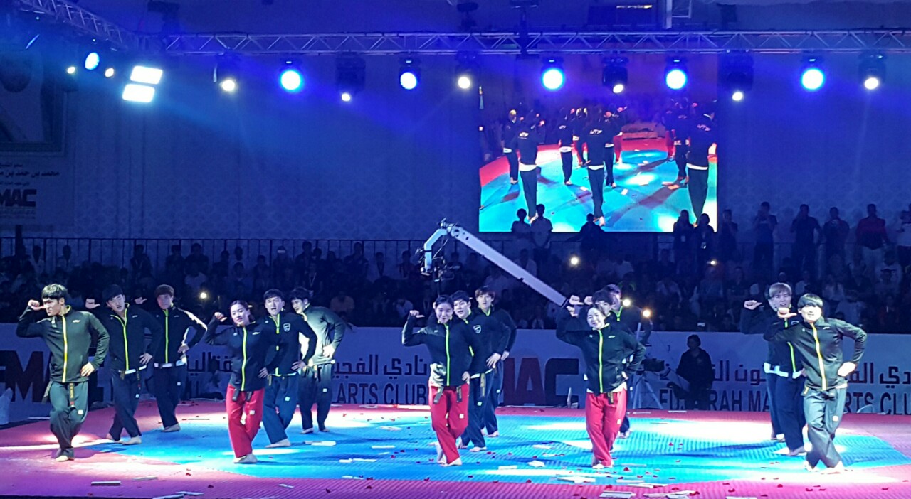 NEWSPhoto News WTF Demonstration Team Performs at 4th Fujairah Open 2016 event in Sheik Khalifa hall, Fujairah, U.A.E February 25, 2016 0 Share on Facebook Tweet on Twitter