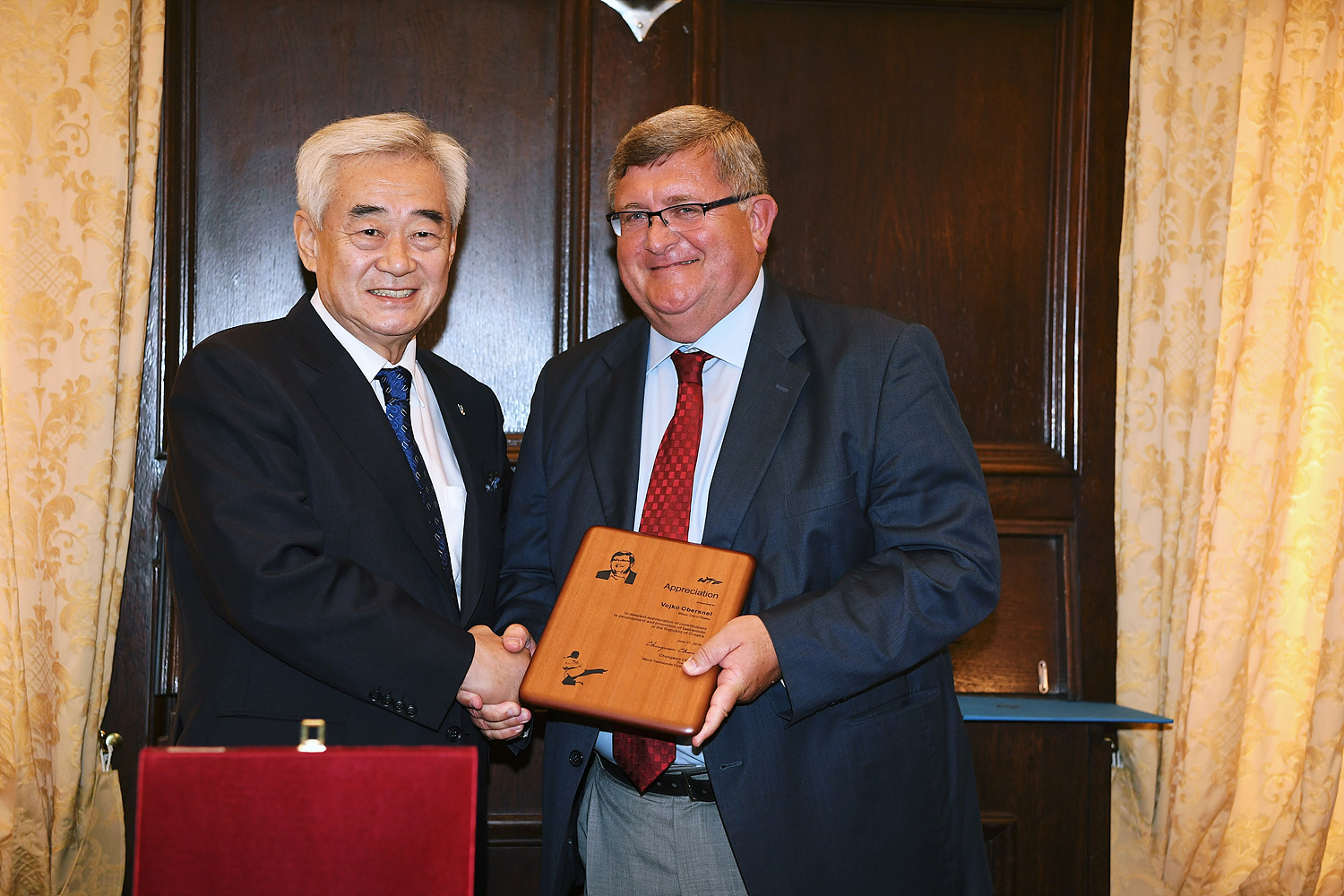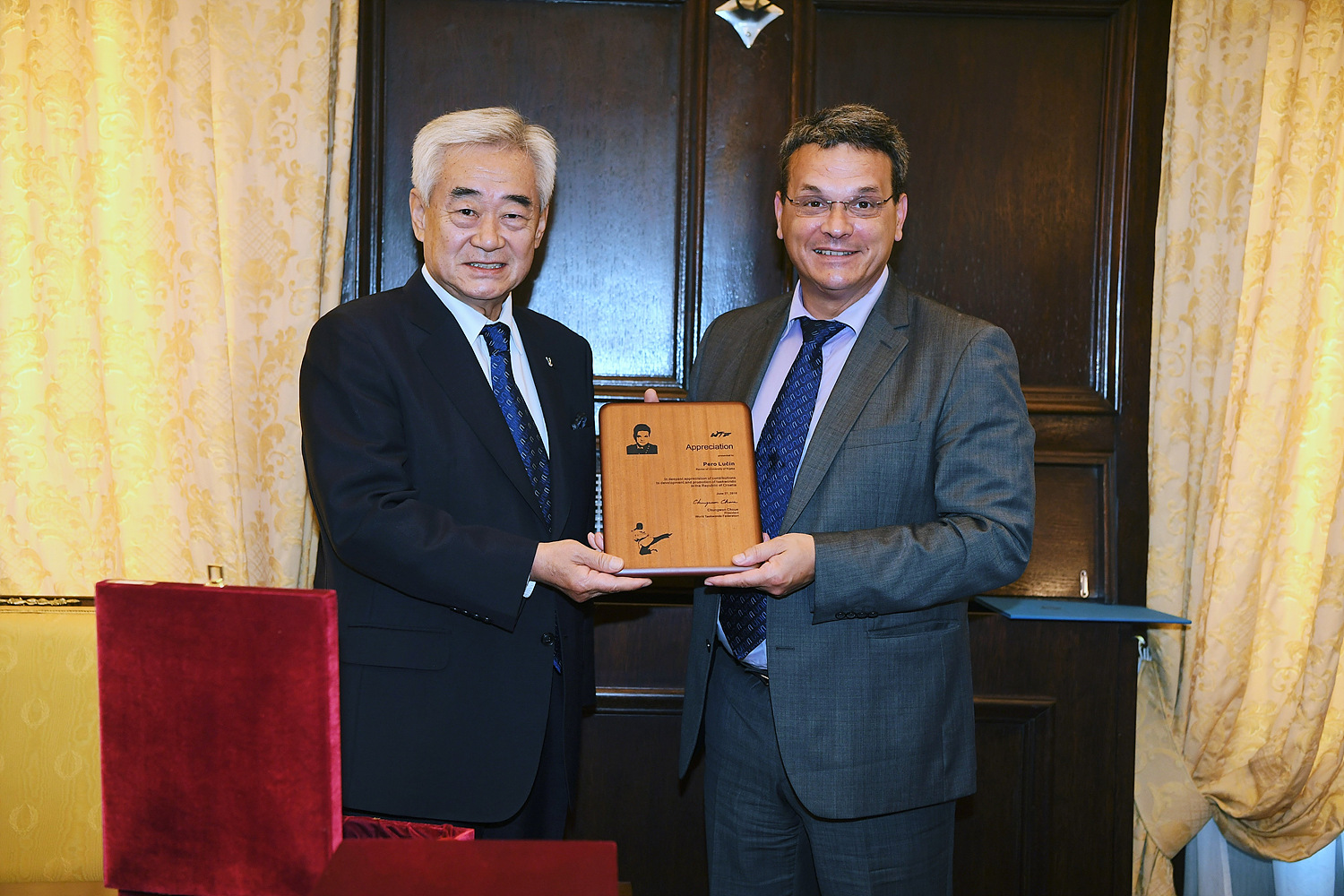 President Choue was joined at the ceremony by Prof. Pero Lucin, Rector at the University of Rijeka, Ivo Usmiani, President of JGL and Board of Trustees Member of the Taekwondo Academy in Rijeka, Zlatko Komadina, President of County of Primorje and Gorski kotar, Vojko Obersnel, Mayor of Rijeka, Dalibor Krpan, WTF Auditor and President of Taekwondo Academy in Rijeka and Won-sup Park, Ambassador of Korea to Croatia.
